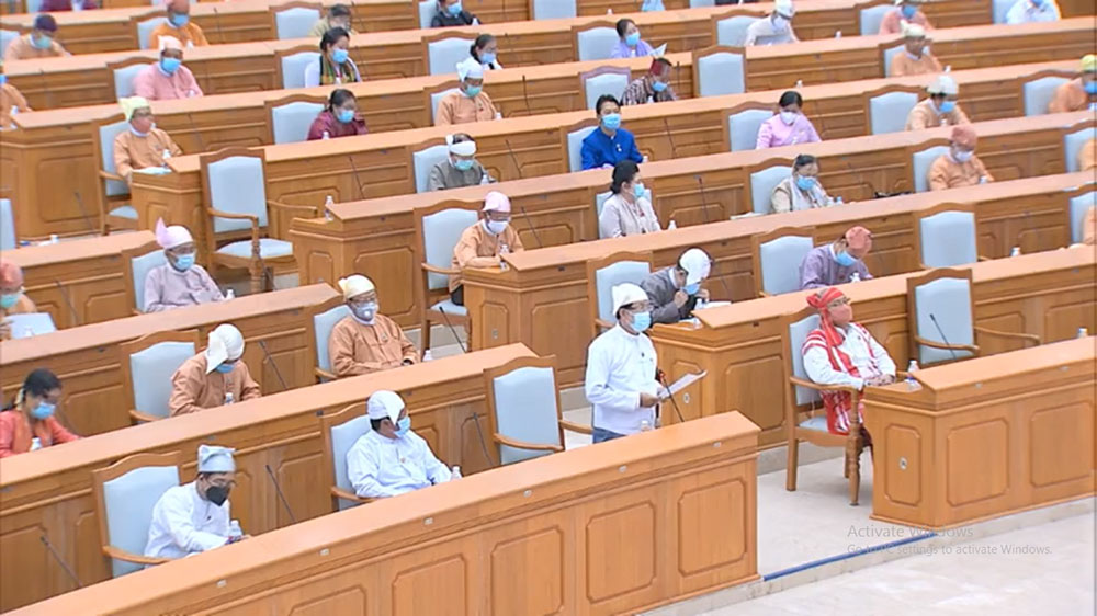 COVID-19 စီးပွားရေး ကုစားမှု စီမံချက် လွှတ်တော်အမတ်တွေ ဆွေးနွေ (Photo- ဧရာဝတီ)