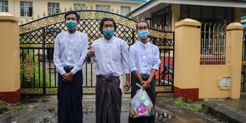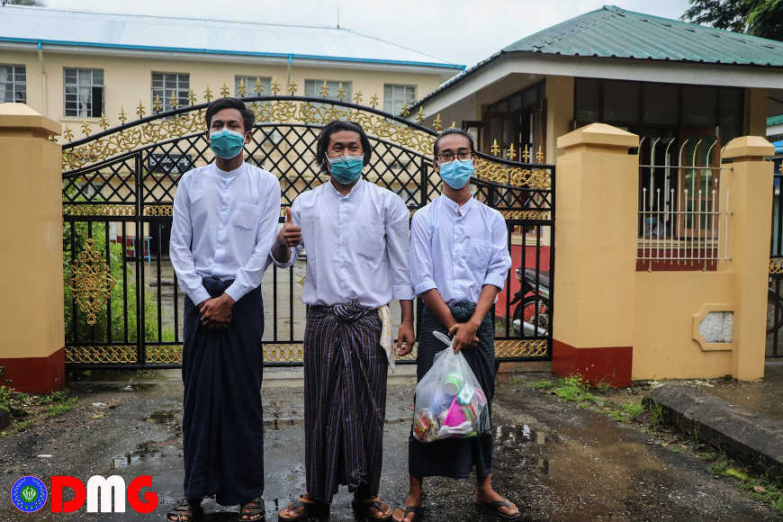 ရခိုင်ပြည်နယ်အစိုးရအဖွဲ့ရုံးရှေ့၌ ဆန္ဒဖော်ထုတ်ခဲ့သဖြင့် သဘာဝဘေးအန္တရာယ်ဆိုင်ရာ စီမံခန့်ခွဲမှုဥပဒေပုဒ်မ-၂၅ နှင့်အမှုဖွင့်ခံထားရသည့် ရခိုင်ပြည်ကျောင်းသားသမဂ္ဂမှ ကျောင်းသားသုံးဦးအား စက်တင်ဘာလ ၂၂ ရက်တွင် စစ်တွေမြို့နယ်တရားရုံးမှ စွဲချက်မတင်မီပြန်လွှတ်ပေးလိုက်ကြောင်း သိရသည်။