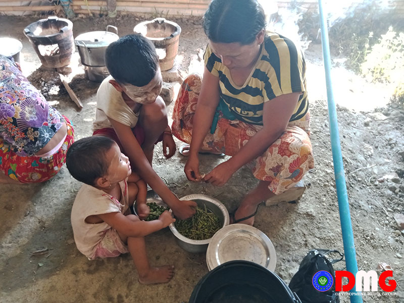 “ကျနော်တို့ စစ်ဘေးရှောင်စခန်းမှာတော့ ဖြစ်သလိုစားသောက်နေကြပါတယ်။ မိသားစုများတဲ့သူတွေမှာဆိုရင် ချေးငှားပြီး စားနေကြတယ်။ ဟိုလက ထောက်ပံ့ထားတဲ့ဆန်က ကုန်သွားပြီ။ အစိုးရကပေးထားတဲ့ ပိုက်ဆံ လေးသောင်းကုန်သွားရင်တော့ သူတို့မှာ စားစရာမရှိတော့ပါဘူး။ လက်ရှိ ကျနော်တို့စခန်းမှာ ဆန်တစ်အိတ်မှ မရှိ တော့ဘူး။ ဆန်ကတော့ အရေးပေါ်လိုအပ်နေပါတယ်” ဟု စခန်းတာဝန်ခံ ဦးသိန်းကျော်မြက ရှင်းပြသည်။