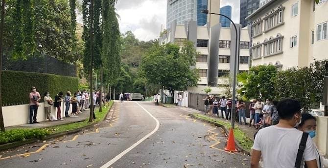စင်ကာပူရောက် မြန်မာနိုင်ငံသားများအနေဖြင့် ကြိုတင်ဆန္ဒမဲပေးခြင်းကို စင်ကာပူဆိုင်ရာမြန်မာသံရုံးတွင် နံနက် ၉ နာရီမှစ၍ ခွင့်ပြုခဲ့ခြင်းဖြစ်ပြီး အောက်တိုဘာ ၁ ရက်၌ ကြိုတင်မဲပေးခွင့်ရှိသူဦးရေ ၈၀၀ ဦးခန့်ရှိရာ ရာနှုန်းပြည့်နီးပါး လာရောက်မဲပေးခဲ့ကြကြောင်းနှင့် ကိုဗစ်ရောဂါထိန်းချုပ်ရေးကာလဖြစ်သည့်အတွက် လူစုလူဝေးမဖြစ်စေရန်နှင့် ရောဂါကူးစက်မှုမရှိစေရန်အတွက် ကြိုတင်မဲပေးခြင်းကို အောက်တိုဘာ ၁၈ ရက်အထိ ခွင့်ပြုပေးထားကြောင်း သိရသည်။