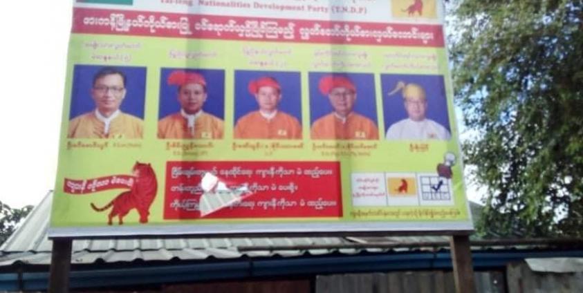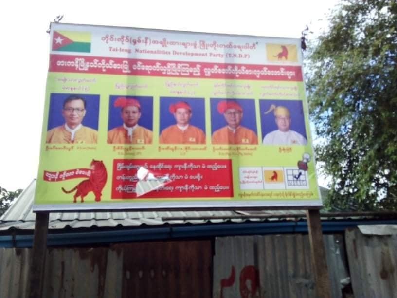 တိုင်းလိုင် (ရှမ်းနီ) အမျိုးသားများဖွံ့ဖြိုးတိုးတက်ရေးပါတီ၏ ဖားကန့်မြို့နယ် လွှတ်တော်ကိုယ်စားလှယ်လောင်းများ မဲဆွယ်စည်းရုံးရေး ဆိုင်းဘုတ်ကို ဆိပ်မူအုပ်စုအတွင်း စိုက်ထူထားခဲ့ခြင်းဖြစ်ပြီး အောက်တိုဘာ ၇ ရက်တွင် လူတစ်ယောက်က ဖျက်စီးသွားခဲ့ခြင်းဖြစ်ကြောင်း မျက်မြင်တွေ့ရှိခဲ့သော်လည်း ဖမ်းစီးရမိခဲ့ခြင်းမရှိခဲ့ကြောင်း သိရသည်။