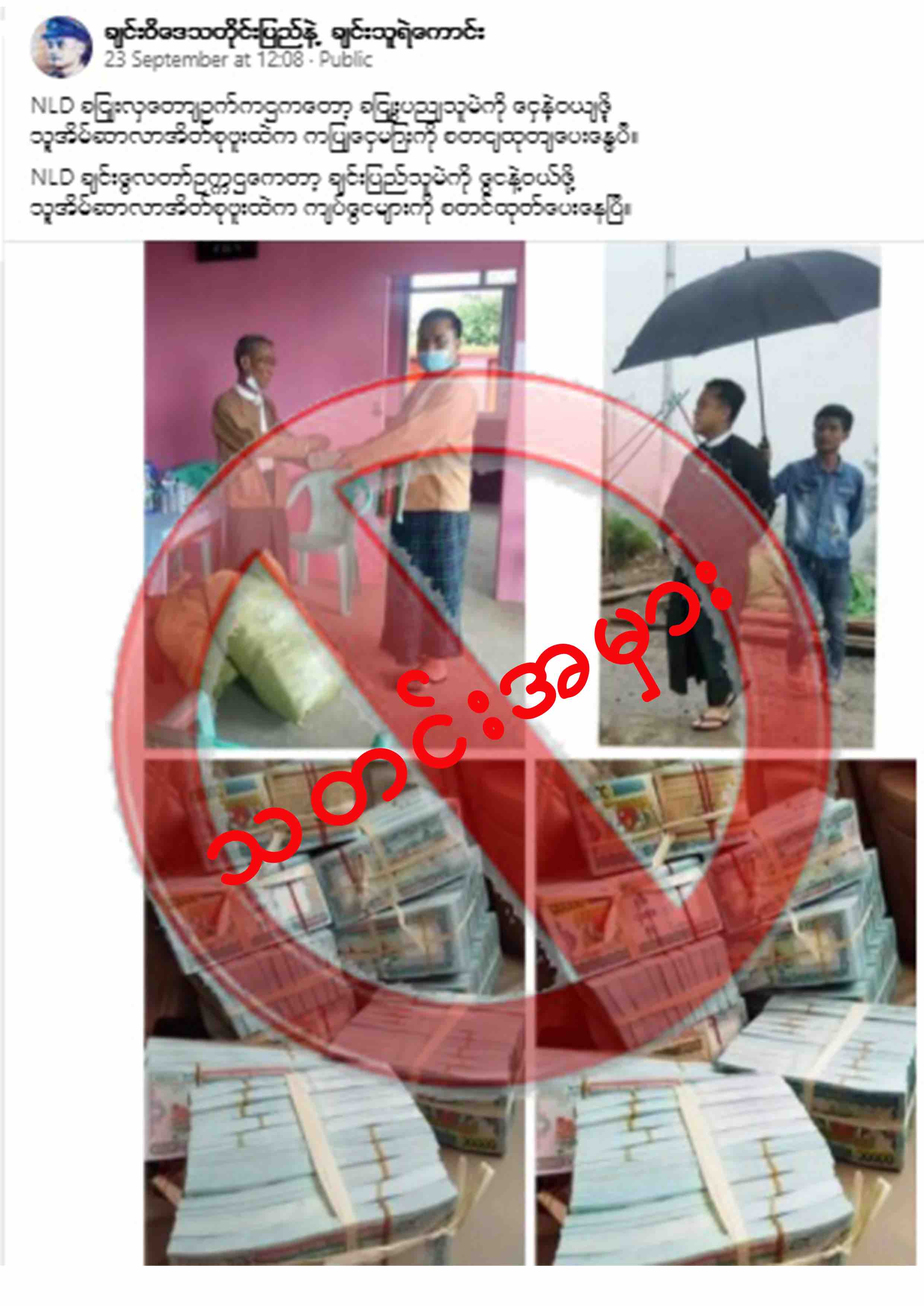 ဒါကြောင့် ချင်းလွှတ်တော်ဥက္ကဌက ချင်းပြည်သူတွေရဲ့မဲကို ငွေနဲ့ဝယ်ဖို့ သူ့အိမ်ဆာလာအိတ်စုဗူးထဲက ကျပ်ငွေများကို စတင်ထုတ်ပေးနေပြီဆိုတဲ့သတင်းဟာ ရွေးကောက်ပွဲကို ရည်ရွယ်ပြီးတိုက်ခိုက်တဲ့ သတင်းအမှားတစ်ပုဒ်ဖြစ်တယ်ဆိုတာ ဖော်ပြပေးလိုက်ပါတယ်။