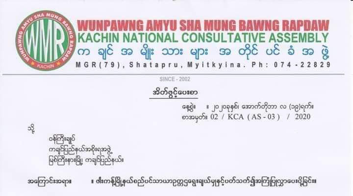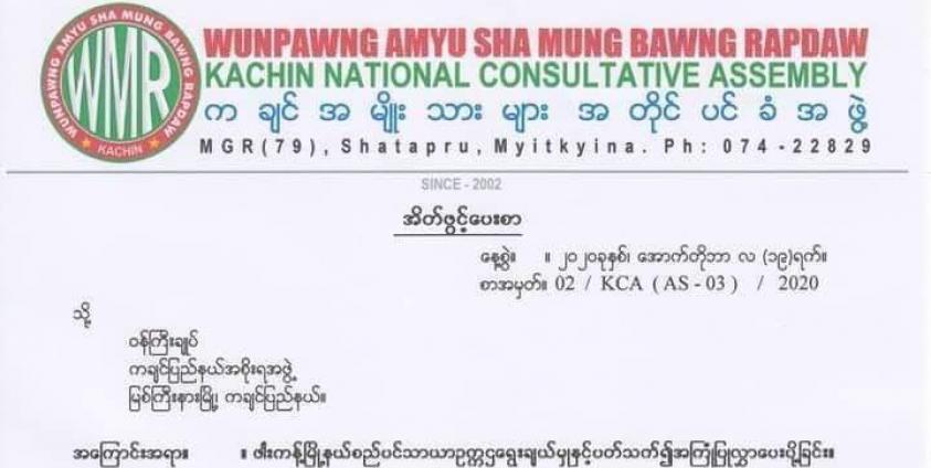 “ဥက္ကဌ ရွေးချယ်ခဲ့တဲ့ ကိစ္စနဲ့ပတ်သက်ပြီးတော့ အရပ်ဖက်အဖွဲ့အစည်းတွေကြားမှာ တော်တော် ဝေဖန်သုံးသပ် နေတာရှိနေပါတယ်။ အဲ့ဒါက မဲအများဆုံရရှိသူကို ဥက္ကဌနေရာမပေးဘဲ မဲနည်းတဲ့သူကို ဥက္ကဌနေရာမှာ ပေးလိုက် တယ်လို့ကြားရပါတယ်။ တစ်ချို့က စိတ်မကောင်းတဲ့အတွက် ကန့်ကွက်နေတာတွေကို မြင်တွေ့နေရတာပေါ့။ အဲ့ဒါကိုကျနော်တို့ WMR ကလည်းမှားယွင်နေတယ်လို့ သုံးသပ်လို့ရတယ်။ ပြောချင်တာက ပြည်နယ် အစိုးရအနေနဲ့ တရားမျှတမှုရှိရှိ ပြည်သူလူထုရဲ့စကားသံနားထောင်ပြီး ရွေးချယ်ပေးရင်ပိုကောင်းလိမ့်မယ်လို့ထင်တယ်။ အဲ့ဒါကို အကြံပြုတဲ့သဘောအနေနဲ့ အိပ်ဖွင့်စာပေးခဲ့တာပါ” ဟု ကချင်အတိုင်ပင်ခံအဖွဲ့ WMR မှ ပြောဆိုခွင့်တာဝန်ရှိသူ ဦး Tang Gun က ယခုလို ပြောဆိုသည်။