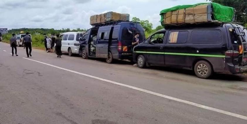 စိုင်းထွန်းစံ — မြဝတီမြို့မှလာသော တရုတ်နိုင်ငံသားများတင်ဆောင်လာသည့် မော်တော်ယာဉ် ၄ စီးကို သထုံမြို့အနီး ဒုံသမိတံတားရှိ ကိုဗစ် ၁၉ စစ်ဆေးရေးဂိတ်တွင် ယခုရက်ပိုင်းအတွင်း စစ်ဆေးတွေ့ရှိသဖြင့် အရေးယူထားကြောင်း ဘားအံမြို့နယ် မြိုင်ကလေးရဲစခန်းမှ ရဲအုပ်ကိုကိုမြတ်ထံမှ သိရသည်။