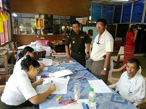 မောင်တောခရိုင် လဝကရုံးတွင် ၀ိှုက်ကတ်များကို လက်ခံနေစဉ်)