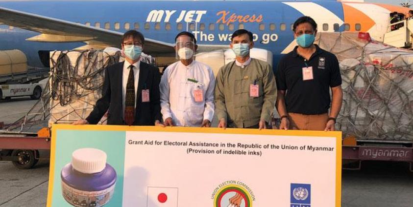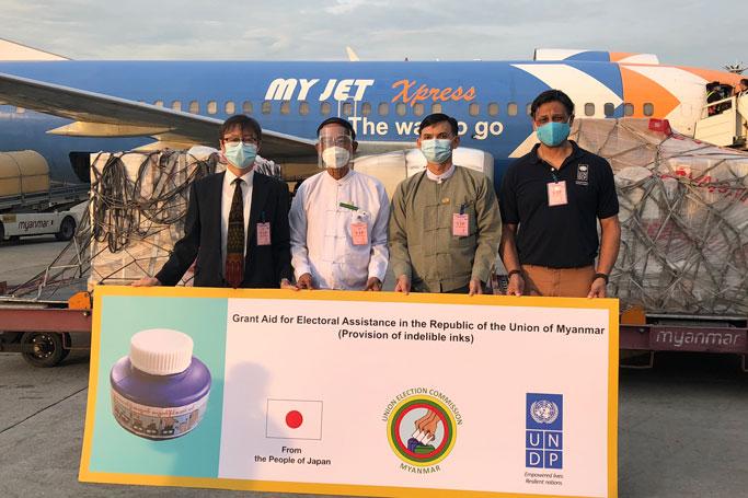 ဂျပန်နိုင်ငံက မြန်မာနိုင်ငံအတွက် “ရွေးကောက်ပွဲ အကူအညီပေးရေးစီမံကိန်း” အရ တစ်ကြိမ်ထက်ပို၍ မဲပေးခြင်းကို ကာကွယ်တားဆီးရန် အသုံးပြုသည့် အလွယ်တကူဖျက်ပစ်၍ မရသော မင်ရည်များ ယန်းငွေ ၁၈၁ သန်းဖိုး (အမေရိကန် ဒေါ်လာ ၁ ဒသမ ၇ သန်းခန့်) လွှဲပြောင်းပေးအပ်ကြောင်း သိရသည်။