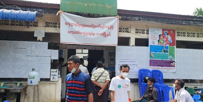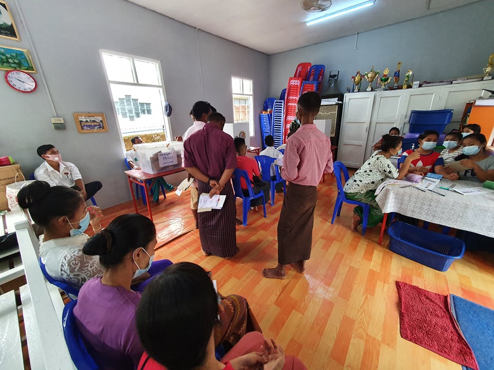 NLD ရင်ထိုးတံဆိပ်တပ်ဆင်ထားသော မဲရုံကိုယ်စားလှယ်တစ်ဦးသည် မဲလာပေးသူများကို မည်ကဲ့သို့ မဲလက်မှတ်များရယူကာ မည်သို့ မဲပေးရသည်ကို မဲရုံအတွင်း လိုက်လံရှင်းပြမှုကို ယနေ့ (အောက်တိုဘာ ၂ ရက်) နံနက်ပိုင်းတွင် တောက်လျှောက်ပြုလုပ်ခဲ့ပြီး ထိုသို့ မပြုလုပ်ရန် ဆိုင်ရာတာဝန်ရှိသူများက ယခင်ကတည်းက အသိပေးထားပြီးဖြစ်ကြောင်း မျက်မြင်တွေ့ရှိသူများက ပြောသည်။