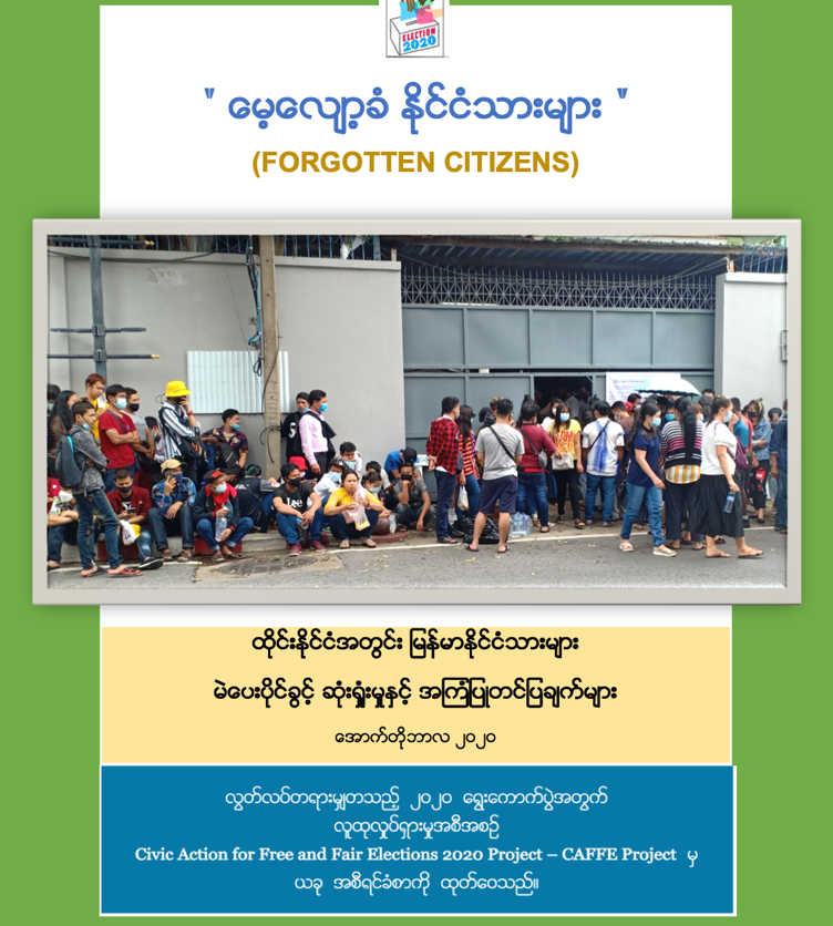 လွတ်လပ်တရားမျှတသည့် ၂၀၂၀ ရွေးကောက်ပွဲအတွက် လူထုလှုပ်ရှားမှုအစီအစဉ် (CAFFE Project) ၏ အောက်တိုဘာလ ၃၁ ရက်နေ့က ထုတ်ဝေသည့် အစီရင်ခံစာအရ ထိုင်းနိုင်ငံသို့ တရားဝင်ရောက်ရှိနေသူ မြန်မာနိုင်ငံသား ၃ သောင်း ၇ ထောင်ကျော်သာ မဲပေးခဲ့သည့်အတွက် ကျန်ရှိသည့် (၁) သန်းခွဲကျော် မဲပေးခွင့် ဆုံးရှုံးရသည်ဟု ဆိုသည်။