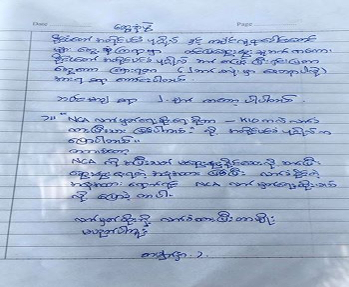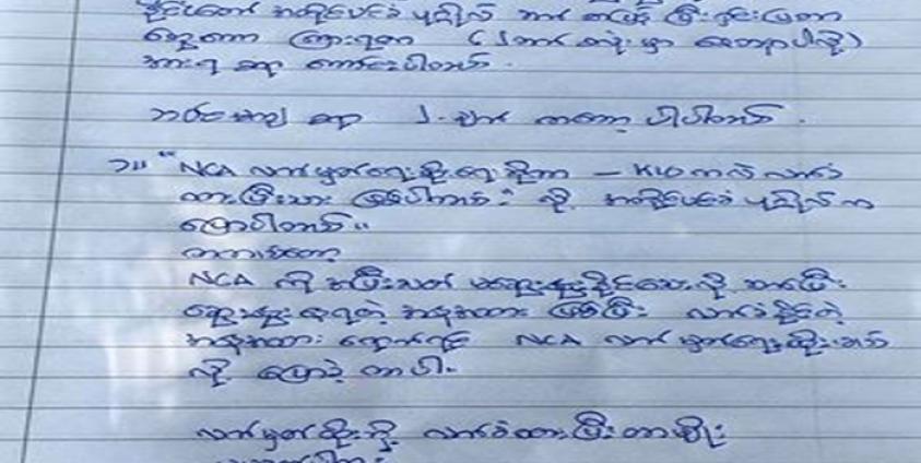 NCA ကိုအပြီးသတ်မဆွေးနွေးနိုင်သေးလို့ ဆက်ပြီးဆွေးနွေးနေရတဲ့အနေအထားဖြစ်ပြီး လက်ခံနိုင်တဲ့ အနေအထားရောက်ရင် NCA လက်မှတ်ရေးထိုးမယ်လို့ပြောခဲ့ခြင်းဖြစ်ကြောင်း ၎င်းကပြောဆိုသည်။