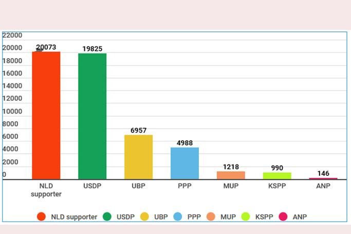 ပါတီအသစ်များထဲမှ တစ်ခုဖြစ်သော ပြည်ထောင်စုကောင်းကျိုးဆောင်ပါတီက ဒေါ်လာ ၇၀၀၀ နီးပါး သို့မဟုတ် ကျပ်သိန်း ၉၀ ဝန်းကျင်၊ ပြည်သူ့ရှေ့ဆောင်ပါတီက ပါတီနှင့်ဆက်စပ်သော ဖေ့စ်ဘုတ်စာမျက်နှာများအတွက် ကျပ်ငွေ ၆၅ သိန်းနီးပါး သုံးခဲ့သည်။