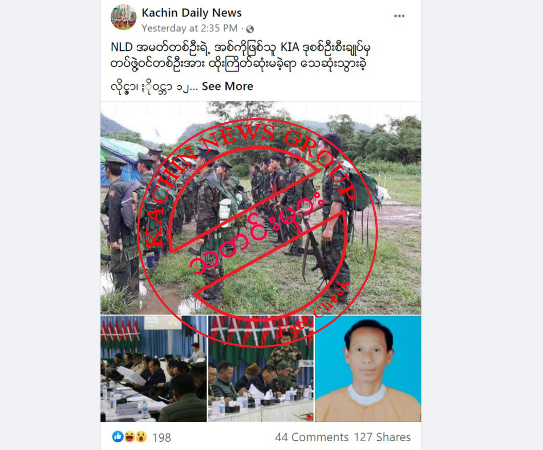 KIA ဒု-စစ်ဦးစီးချုပ် လူသတ်မှုကိစ္စကို သူ၏ညီဖြစ်သူ ရွေးကောက်ခံကချင် NLD အမတ်တစ်ဦးက ကြားဝင်ညှိနှိုင်းကာ နစ်နာကြေးပေးခဲ့သည်ဆိုသော ရေးသားမှုမှာ သတင်းအမှားဖြစ်သည်ဟု မေးမြန်းသိရှိရသည်။