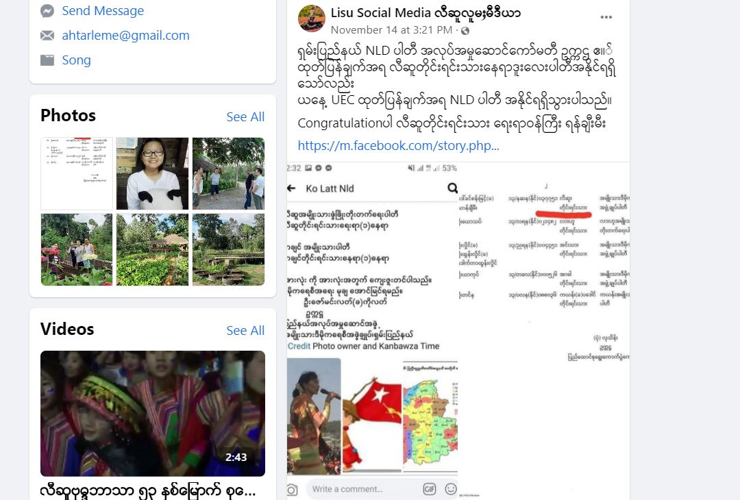 လီဆူအမျိုးသားဖွဲ့ဖြိုးတိုးတက်ရေးပါတီ LNDP (ဒူးလေးပါတီ) ဥက္ကဌ ဦးရွှေမင်း၏အကောင့်နှင့် Lisu Social Media လီဆူလူမှုမီဒီယာ page တို့တွင် ဒူးလေးပါတီက ကချင်ပြည်နယ်တွင် ရေးရာဝန်ကြီးတစ်နေရာ၊ ပြည်နယ်အမတ် ၁ နေရာနှင့် ရှမ်းပြည်နယ်တွင် ရေးရာဝန်ကြီးတစ်နေရာစသဖြင့် ၃ နေရာအနိုင်ရရှိကြောင်း နိုဝင်ဘာ ၁၂ ရက်နေ့က ရေးသားဖော်ပြခဲ့ကြသည်။