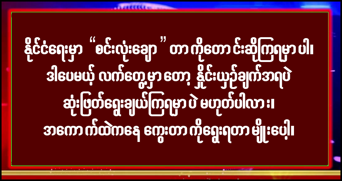 ပြည်သူတွေက မျှော်လင့်ချက်နဲ့ အားကိုးတကြီး မဲပေးရွေးချယ်ခဲ့သူတွေဟာ “၂၀၀၈ အခြေခံဥပဒေဘောင် ထဲမှာ - စည်းကမ်းပြည့်ဝတဲ့ဒီမိုကရေစီဘောင်”ထဲမှာ သမရိုးကျနည်းတွေနဲ့ လှေကြီးထိုးရိုးရိုးပဲ၊ “လည်စင်းငုံ့ခံ - သင့်မြတ်ရန်”ဆိုပြီး “ပြုသမျှ - နုနေ”ရင်တော့ မဲပေးသူပြည်သူတွေက လိုအပ်ရင်လိုအပ်သလို ကြိမ်တံဖျာနဲ့ အဆက်မပြတ် တို့ - တို့ ပေးနေဖို့ မလွဲမသွေ လိုအပ်ပါတယ်။ ဒါ ပြည်သူတွေရဲ့ တာဝန်ပါ။