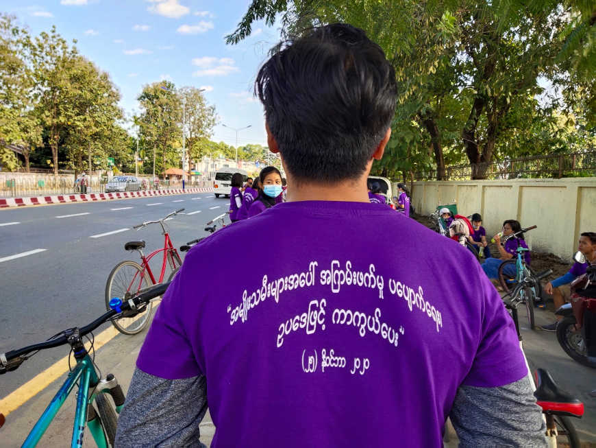 ‘အမျိုးသမီးများအပေါ် အကြမ်းဖက်မှု ပပျောက်ရေး ဥပဒေဖြင့် ကာကွယ်ပေး’ ဆောင်ပုဒ်ဖြင့် လူငယ်အယောက် ၃၀ ခန့်က မြစ်ကြီးနားမြို့တွင်း စက်ဘီးစီးကမ်းပိန်းတစ်ခုကို ပြုလုပ်ခဲ့ကြောင်းသိရသည်။