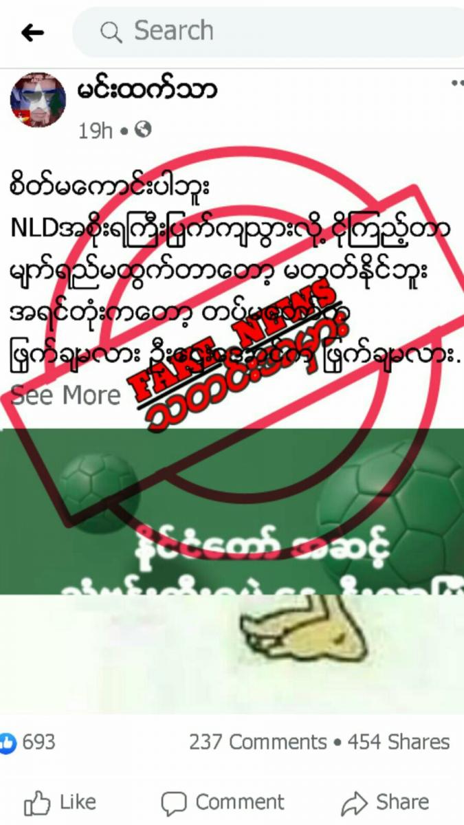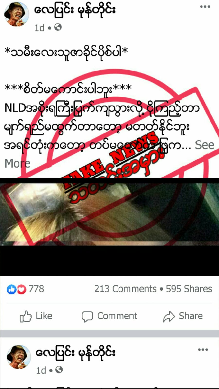 “မဲခိုးတာ ထောက်လှမ်းတဲ့ သတင်းထောက် အသေဖျောက်လိုက်တာ ကြည့်ပေါ့ ” လို့ ထည့်သွင်းရေးသားထားမှုဟာ သူ့ရဲ့ပို့စ်ကို အမှန်လို့ ထင်အောင်ဖန်တီးထားတဲ့အချက်ပါ။ ၂၀၂၀ ရွေးကောက်ပွဲနဲ့ပတ်သက်လို့ သတင်းရယူရေးသားကြတဲ့ သတင်းထောက်တွေ လုံခြုံရေးထိခိုက်တယ်ဆိုတဲ့ ဘယ်လိုသတင်းမျိုးမှ မရှိတဲ့အပြင် လက်လှမ်းမီသလောက် သတင်းထောက်တွေလည်း ဘေးကင်းလုံခြုံလျက်ရှိကြပါတယ်။