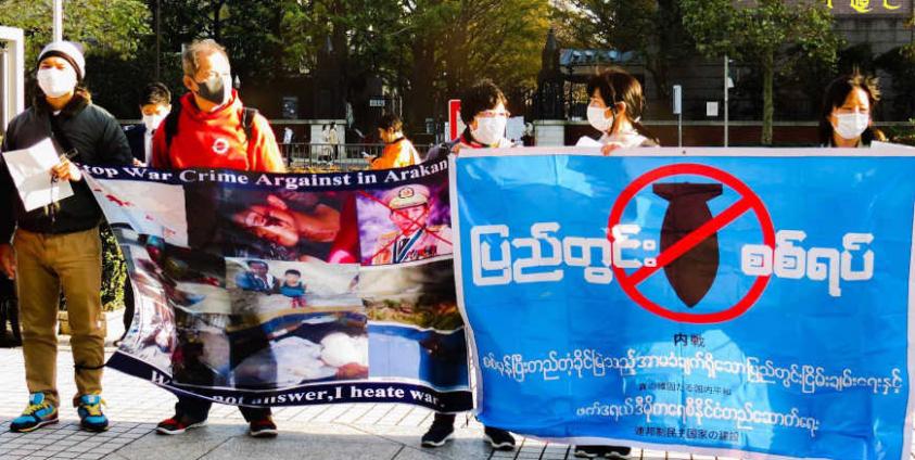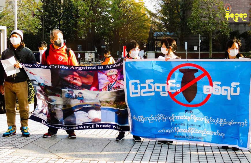 ဆောင်းဇာခြည် — ဂျပန်နိုင်ငံ၊ တိုကျိုမြို့၊ ကုလသမဂ္ဂရုံးရှေ့၌ မြန်မာတိုင်းရင်းသား ၈၀ ကျော်က ရခိုင်ပြည်နယ်တွင် ကိုဗစ်ကာလ အင်တာနက် 4G အဆင့် ရရှိရေးနှင့် ရခိုင်စစ်ပွဲရပ်စဲရေး တောင်းဆို၍ ဖမ်းဆီးခံထားရသည့် ကျောင်းသားများ ပြန်လည် လွတ်မြောက်ရေးတို့အတွက် ယနေ့ နေ့လယ်ပိုင်းက ဆန္ဒဖော်ထုတ် တောင်းဆိုခဲ့ကြသည်။
