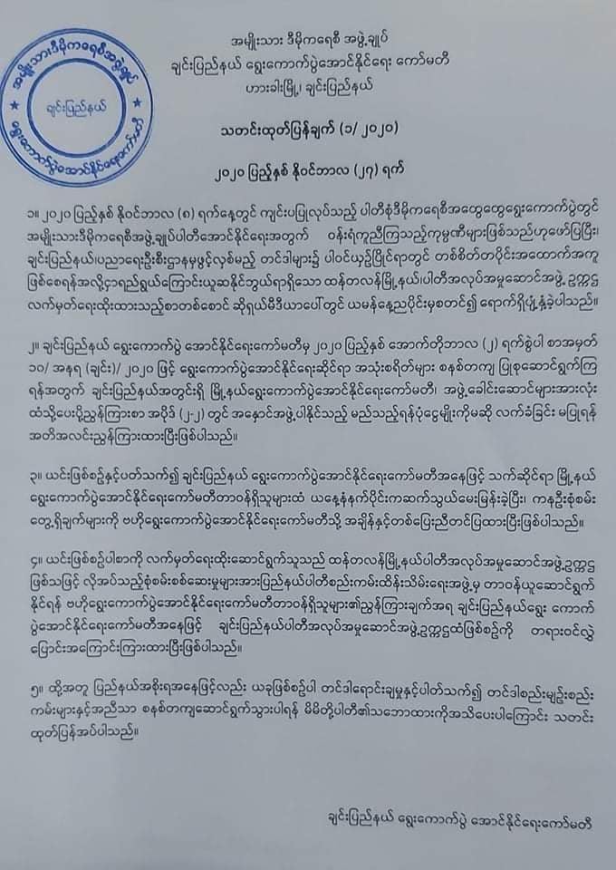 NLD အောင်နိုင်ရေးအလှူရှင်များနှင့် တင်ဒါကိစ္စဆက်နွယ်သည့်ကိစ္စ စစ်ဆေးတွေ့ရှိမှုများ ဗဟိုကိုတင်ပြထား