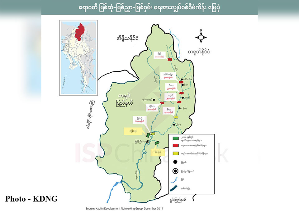 မြစ်ဆုံစီမံကိန်းအပြင် မေခနှင့် မလိခမြစ်ပေါ်တွင် တည်ဆောက်မည့် ရေကာတာ စီမံကိန်းများမှာ ချီဖွေ၊ ဝဆုတ်၊ ဖီဆာ၊ ခေါင်လန်ဖူး၊ ရီနန်နှင့် လာဇာ ရေကာတာ စီမံကိန်း တို့ဖြစ်ပြီး ငေါ့်ချမ်းခမြစ်ပေါ်တွင် လောင်းဒင်၊ ခန်ကန်း၊ ဂေါလန်၊ တုံရှင်းချောင်း စီမံကိန်းတို့ဖြစ်သည်ဟု ကချင်လူမှုဖွံ့ဖြိုးရေးကွန်ရက် KDNG ၏ စာရင်းများအရ သိရသည်။