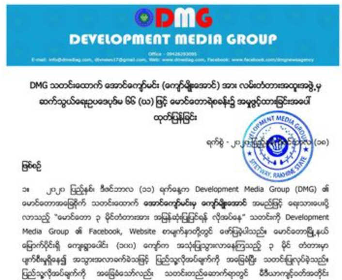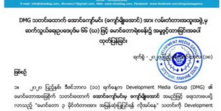 လွန်ခဲ့သည့် ၂ဝ၁၈ ခုနစ် မေလ ၁ ရက်နေ့ကလည်း DMG သတင်းဌာန၏ အယ်ဒီတာချုပ် ဦးအောင်မင်းဦး အပါအဝင် သတင်းဌာနအား မတရားအသင်းဆက်သွယ်မှု ၁၇(၁)ဖြင့် SB မှ အမှုဖွင့်ခံခဲ့ရသည်။