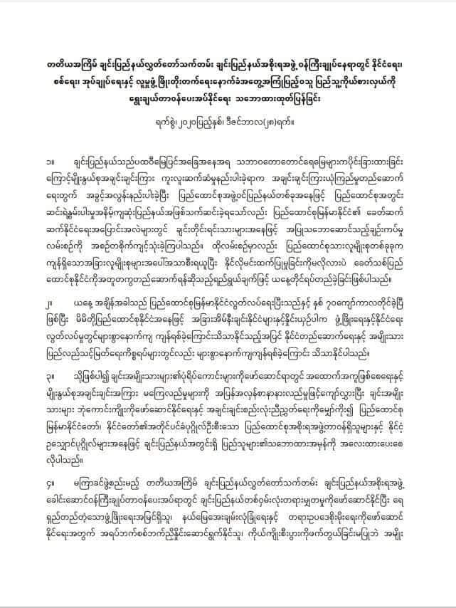 လာမည့် ချင်းပြည်နယ်အစိုးရအဖွဲ့၏ဝန်ကြီးချုပ်နေရာအတွက် နိုင်ငံရေး၊ စစ်ရေး၊ အုပ်ချုပ်ရေး အတွေ့အကြုံရှိသည့် ပြည်သူ့ကိုယ်စားလှယ်ကိုရွေးချယ်တာဝန်ပေးရန် ချင်းအရပ်ဖက် လူမှုအဖွဲ့အစည်းရှစ်ဖွဲ့က ဒီဇင်ဘာ ၂၈ ရက်တွင် ထုတ်ပြန်ချက်ထုတ်ပြန်၍ တောင်းဆိုလိုက်သည်။