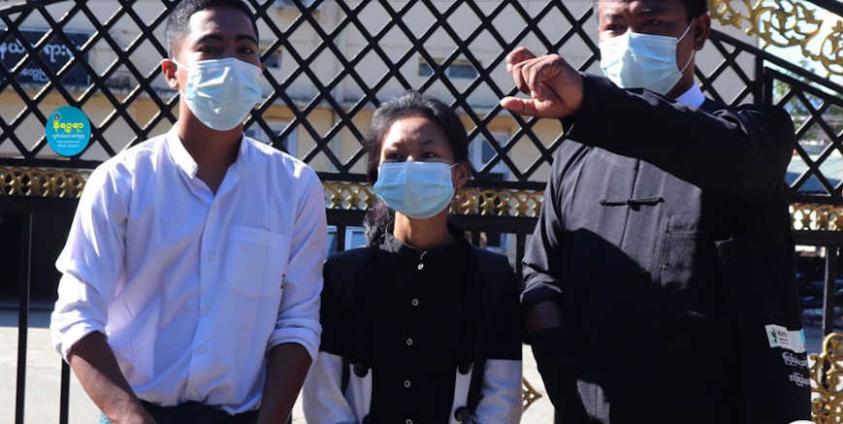 တရားစွဲဆိုခံရနေသူ သုံးဦးမှာ ရခိုင်လူငယ်မျိုးဆက်သစ်ကွန်ရက်မှ ကိုမင်းဘာချေ (ခေါ်)ကိုသန်းလှ၊ ကိုနိုင်နိုင်ထွန်းနှင့် မခိုင်မြတ်သူတို့ဖြစ်ကြသည်။