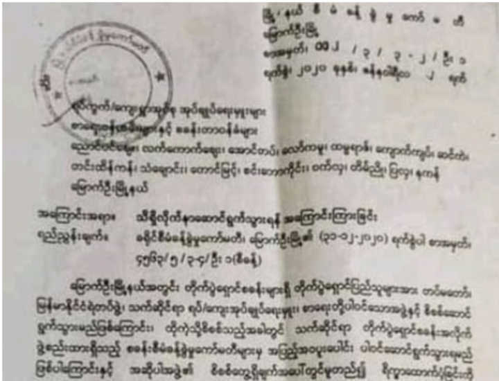 ၄င်းအကြောင်းကြားစာကို ခရိုင်မှတဆင့် မြို့နယ်စီမံခန့်ခွဲရေးကော်မတီမှ စစ်ဘေးရှောင်စခန်းများသို့ စာဖြင့် ပေးပို့လာခြင်းဖြစ်ကြောင်း ၄င်းက ဆက်ပြောသည်။