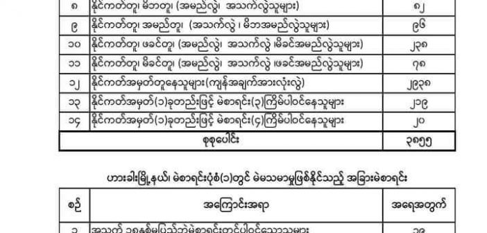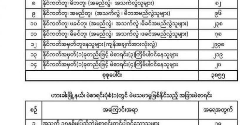 ယင်းအထဲတွင် နိုင်ငံသားစိစစ်ရေးကဒ်ပြား(နိုင်ကဒ်)မရှိဘဲ မဲစာရင်းတွင် ပါဝင်နေသူအများဆုံးဖြစ်ပြီး ၃၀၂၆ ဦး၊ နိုင်ကဒ်အ မှတ်တူသော်လည်း ကျန်အချက်အလက်အားလုံးလွဲသူ ၂၉၃၈ ဦး၊ နိုင်ကဒ်တူ၊ အမည်တူ၊ အသက်တူ၊ မိဘတူ (အားလုံး တူသူ) ၆၆ ဦးနှင့် အသက် ၁၀၀ နှစ်အထက် ၄၅ ဦးရှိသည်ဟု ဖော်ပြထားသည်။