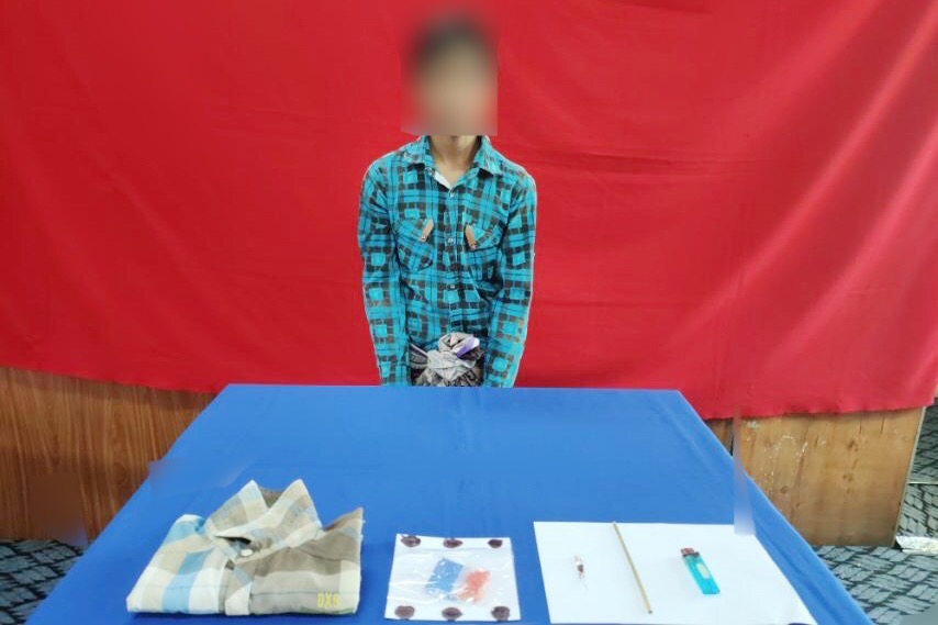မူးယစ်တပ်ဖွဲ့စု(၃၉)ရေးမှ တပ်ဖွဲ့ဝင်းများက မူးယစ်ဆေးဝါးရောင်းချနေသည့်သတင်းအရ ၎င်းလူငယ်ကို စိတ်ကြွမူးယစ်ဆေးဝါး(၇၀) ပြားနှင့်အတူ ဖမ်းဆီးရမိခြင်းဖြစ်ကြောင်း ရဲမှတ်တမ်းက ဖော်ပြသည်။