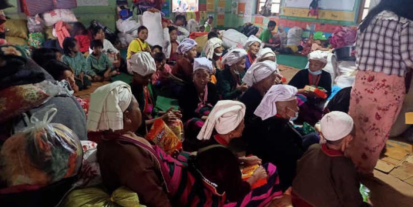 “သူတို့ရောက်လာတာ (၃) ပတ်ပြည့်တော့မယ်။ ၂၅ ရက်ကတည်းက ရောက်လာတာ။ ခုလက်ရှိတော့ အလှူရှင်တွေက တတ်နိုင်သလောက် လှူဒါန်းနေတယ်။ စားသောက်ရေးပိုင်းက အဆင်ပြေတယ်။ အလှူရှင်တွေ လှူဒါန်ထားတဲ့ဟာတွေက ၁ ပတ်စာလောက်တော့ ကျန်သေးတယ်။ အဲ့ထက်ကြာသွားရင်တော့ အခက်ခဲရှိမယ်” ဟု မိုင်းအဘမ်း ကပြောသည်။