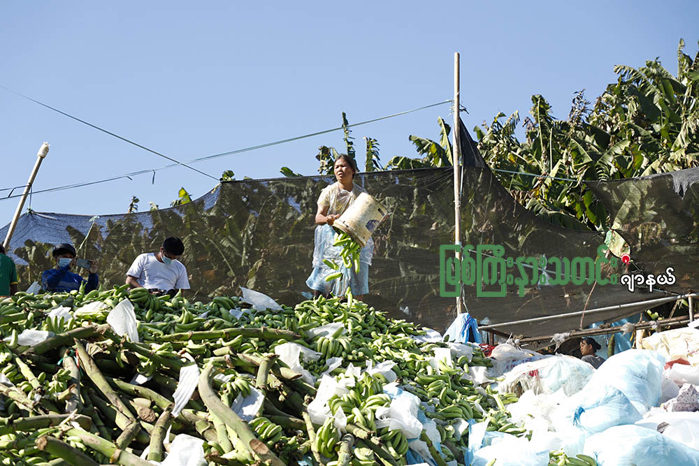“ငှက်ပျောသီးတွေ တအား အပယ်ခံရတော့ တအားနစ်နာတယ်။ အဲ့ဒီလောက်ကြီး မပယ်စေချင်တာပေါ့။ ကျွန်တော်တို့ ကျင်စားတွေအနေနဲ့ စကားများပြီးတော့ တစ်ဝက်လျော်ပေးတယ်။ ကျွန်တော်တို့အတွက် မကိုက်ညီတဲ့အခါကျတော့ ပယ်တဲ့ဟာကို ချေလိုက်တယ်”လို့ ကသာမြို့နယ်ကနေ ဒိန်ဂျာယာန်ကျေးရွာ ငှက်ပျောခြံတစ်ခုမှာ လာရောက်လုပ်ကိုင်တဲ့ ဦးသိန်းကျော်က ပြောပါတယ်။
