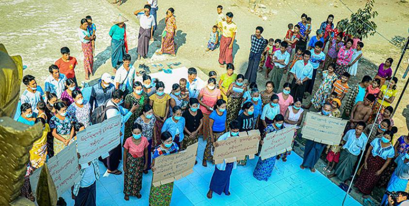 ယနေ့ဆန္ဒဖော်ထုတ်ရာတွင် တပ်မတော်တိုးချဲ့စစ်အင်အားနှင့် စစ်စခန်းများအား ရုပ်သိမ်းပေးရန်၊ အကြမ်းဖက်မှုကျူးလွန်နေသော တပ်မတော်မှတာဝန်ရှိသူများအား အရေးယူပေးရန်၊ ကျေးရွာသားများအား ရွာသို့လွတ်လပ်စွာသွားလာခွင့်ပေးရန်၊ တပ်မတော်သားများယူဆောင်သွားသော စပါး၊ ဆန်၊ နွား၊ ဝက်၊ ဆိတ်၊ သစ်၊ ဆိုင်ကယ်၊ ထွေလာဂျီ၊ ထွန်စက်၊ ရေစုပ်စက်၊ စက်ဘီးနှင့် အခြားပစ္စည်းများအားပြန်ပေးရန်၊ ရွာနှင့် အနီးဝန်းကျင်၌ မြှုပ်ထားသော မြေမြှုပ်မိုင်းများအားဖယ်ရှာပေးရန်တို့ကိုလည်း တောင်းဆိုခဲ့ကြသည်။