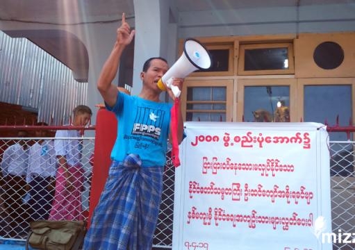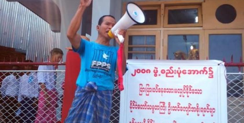 ထိုနေ့နံနက် ၉နာရီအချိန်က ပြည်မြို့ဗိုလ်ချုပ်ကျောက်ရုုပ်အနီး လူငယ့်ရိပ်မြံု စင်တာရှေ့တွင် တစ်ကိုယ်တော်ဟောပြောမှုများပြုလုပ်ကာ "၂၀၀၈ဖွဲ့စည်းပုံအခြေခံဥပဒေပြင်ဆင်ရေး ဒို့အရေး" "နိုင်ငံရေးအကျဉ်းသားများ လွတ်မြောက်ရေး တို့အရေး" စသည့် ကြွေးကြော်သံများကိုကြွေးကြော်ခဲ့သည်။