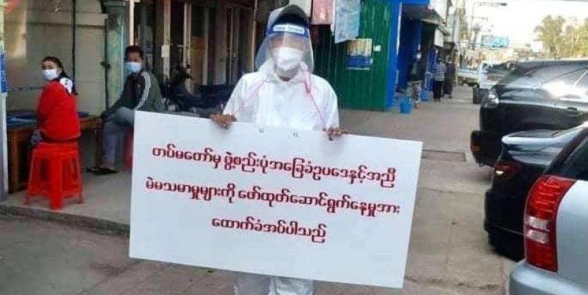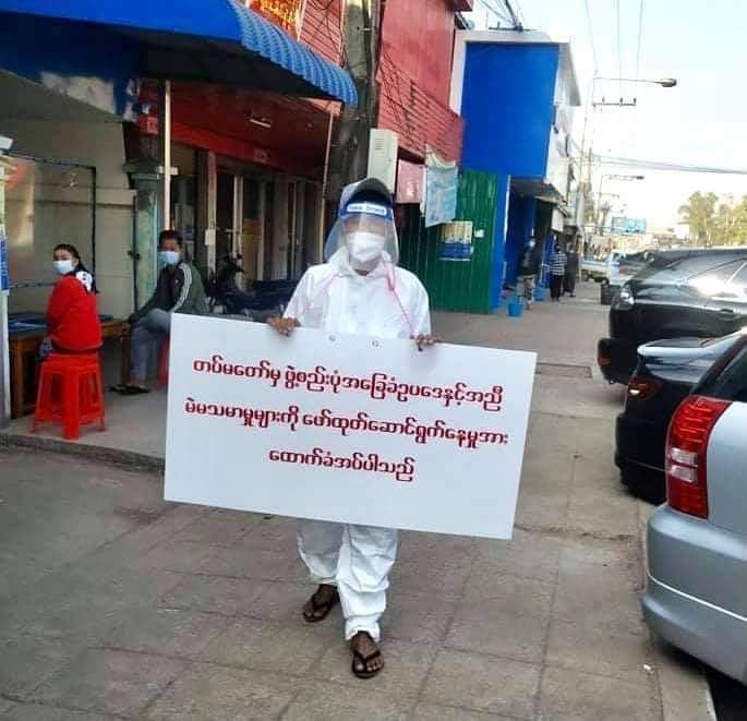 တပ်မတော်၏ မဲစာရင်းစိစစ်များကိုထောက်ခံကြောင်း တစ်ကိုယ်တော် ဆန္ဒထုတ်ဖော်မှုတစ်ခုကို ကရင်ပြည်နယ် မြဝတီမြို့ပေါ်ရှိ ဘုရင့်နောင် ဈေးရှေ့တွင် ဇန်နဝါရီ ၂၁ ရက် (ယနေ့) နံနက် ၉ နာရီကျော်ခန့်က ပြုလုပ်ခဲ့ကြောင်း သိရသည်။