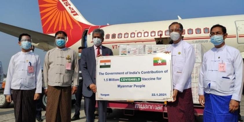 အိန္ဒိယနိုင်ငံမှ မြန်မာနိုင်ငံကို လက်ဆောင်အဖြစ်ပေးအပ်သည့် ကိုဗစ်ကာကွယ်ဆေး (COVISHIELD) အလုံးရေ တစ်သန်းခွဲသည် ပြီးခဲ့သည့် ဇန်နဝါရီလ ၂၂ ရက်နေ့က မြန်မာနိုင်ငံကို ရောက်ရှိလာခြင်းဖြစ်သည်။