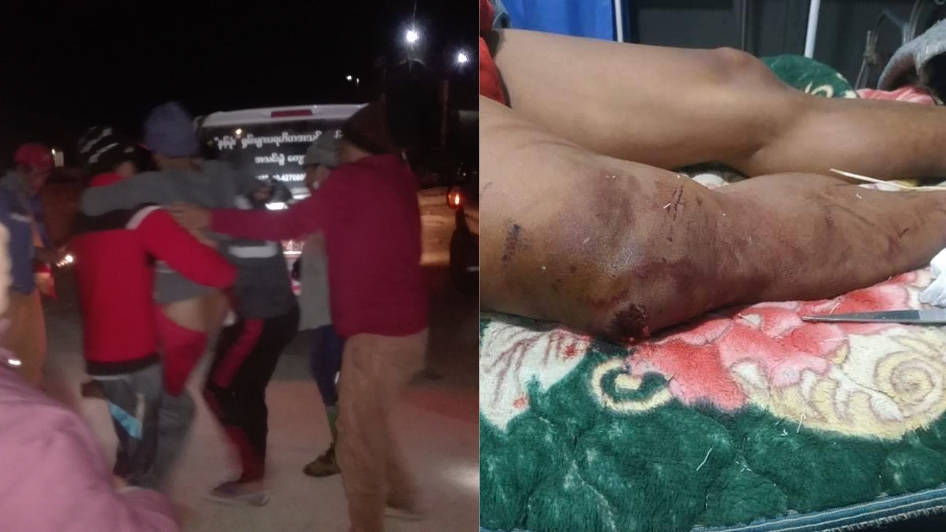 “သူ့ ဒူခေါင်း၊ ပေါင် နဲ့ နောက်ခါး တွေမှာ မိုင်းစထိမှန် ထားတဲ့အတွက် ကျောက်မဲဆေးရုံမှာ ဆေးကုသမှု ခံယူနေပါတယ်” ဟု သွားရောက်ခေါ်ဆောင်သည့် နမ့်ခုံးပရဟိတ အသင်းမှ တာဝန်ရှိသူတဦးက သျှမ်းသံတော်ဆင့်ကို ပြောသည်။