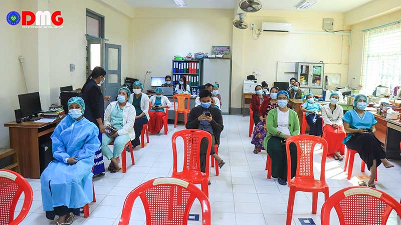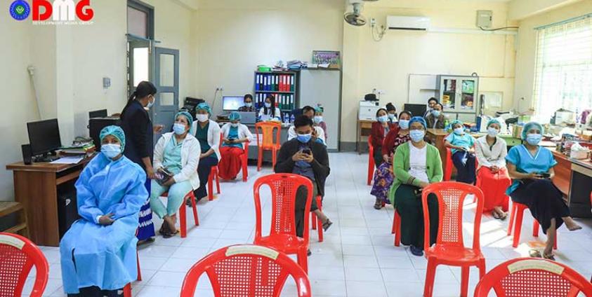 ရခိုင်ပြည်နယ်ရှိ ကျန်းမာရေးဝန်ထမ်း ၄၄၀၀ ကျော်ကို မြို့နယ်ကျန်းမာရေးဆေးရုံများတွင် ကာကွယ်ဆေး စတင်ထိုးနှံပေးခဲ့ပြီး၊ တိုက်နယ်ဆေးရုံမှ ကျန်းမာရေးဝန်ထမ်းများအား မြို့နယ်ဆေးရုံတွင် ထိုးနှံရန် ညွှန်ကြားထားသည်ဟု ပြည်နယ်ပြည်သူ့ကျန်းမာရေးဦးစီးဌာန လက်ထောက်ညွှန်ကြားရေးမှူး ဒေါက်တာစိုးဝင်းပိုင်က ပြောသည်။