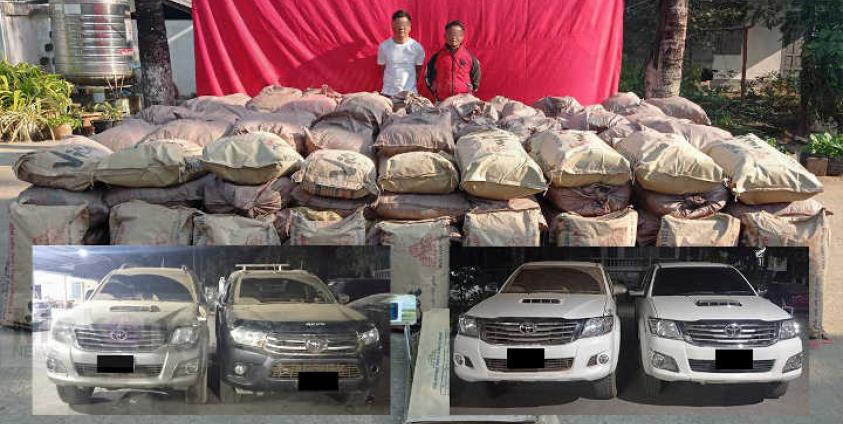 ထို ကား ၄ စီးထဲတွင် မူးယစ်ဆေးဝါးချက်ရာတွင် အသုံးပြုသည့် ကဖင်း ကီလို ၆၀၂၅ ကို သိမ်းဆည်းရပြီး၊ ပထမဆုံး ရပ်တန့် စစ်ဆေးခဲ့သည့် ယာဉ်ပေါ်မှ ယာဉ်မောင်း နှင့် ယာဉ်နောက်လိုက် ကိုသာ ဖမ်းဆီးနိုင်ခဲ့ပြီး၊ ကျန် (၃)စီးမှ ယာဉ်မောင်း နှင့် ယာဉ်နောက်လိုက်များ ထွက်ပြေး လွှတ်မြောက်သွားသည်။