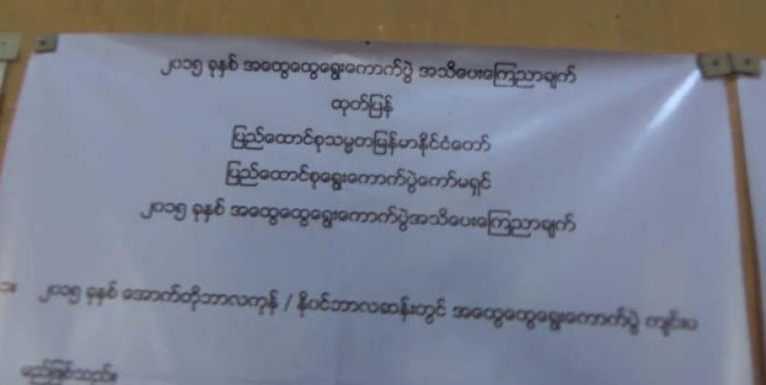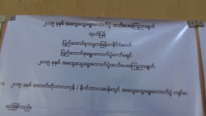 ပြည်နယ်ရွေးကောက်ပွဲကော်မရှင်အဖွဲ့ခွဲ တာဝန်ခံအရာရှိ ဦးဟိဏ်လင်းထက်က “အခုကပ်မှာက အခြေခံမဲဆန္ဒရှင် စာရင်းပါ၊ ပြည့်စုံမှန်ကန်တဲ့ မဲဆန္ဒရှင်စာရင်းမဟုတ်သေးပါဘူး၊ ဇွန်လ ၈ ရက်နေ့ကနေ ၂၁ ရက်နေ့အထိ ၁၄ ရက်ကပ်သွားမယ်၊ ဒီစာရင်းထဲ နာမည်မပါတဲ့လူတွေက ရပ်ကျေးကော်မရှင်မှာ ပြန်လျှောက်လို့ရပါတယ်” ဟု ဆိုသည်။