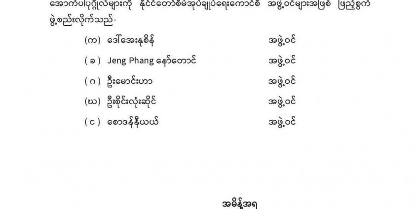 နိုင်ငံတော်စီမံအုပ်ချုပ်ရေးကောင်စီဖွဲ့ကို ပြီးခဲ့သည့်ရက်ပိုင်းက ဖွဲ့စည်းခဲ့ခြင်းဖြစ်ပြီး တပ်မတော်ထိပ်ပိုင်းခေါင်းဆောင်များအပြင် ပြင်ပလူပုဂ္ဂိုလ်များဖြင့် ဖွဲ့စည်းခဲ့ခြင်းဖြစ်သည်။