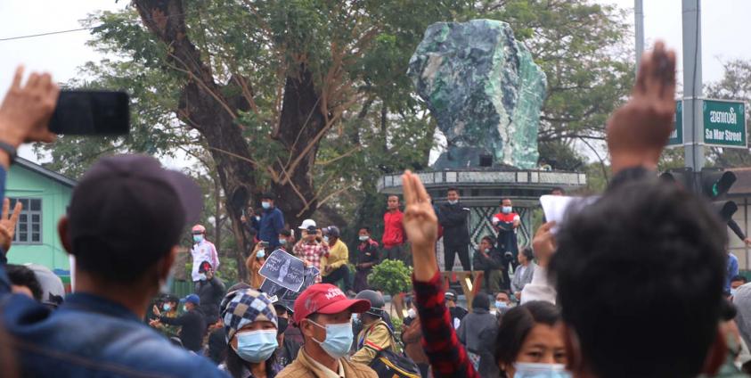 ကချင်ပြည်နယ်၊ မြစ်ကြီးနားမြို့ မနောကွင်းတွင် စစ်အာဏာရှင်ဆန့်ကျင်ကြောင်း ပြည်သူများဆန္ဒဖော်ထုတ်မှု ဖေဖော်ဝါရီ ၈ ရက် (ယနေ့) ကပြုလုပ်ခဲ့ကြောင်း သိရသည်။
