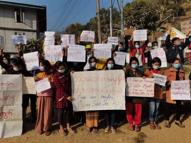 စစ်ရေးပဋိပက္ခဒဏ်ခံနေရသည့် ချင်းပြည်နယ် တောင်ပိုင်း ပလက်ဝမြို့တွင် တပ်မတော်၏ စစ်အာဏာသိမ်းမှုကို ဆန့်ကျင်ကန့်ကွက်သည့်အနေဖြင့် ယနေ့(ဖေဖော်ဝါရီလ ၉ ရက်) နံနက်ပိုင်း ၈ နာရီမှ ၉ နာရီအထိ ဒေသခံပြည်သူ ၃၀ ကျော်က ဆန္ဒဖော်ထုတ်ခဲ့ကြသည်။
