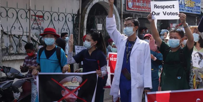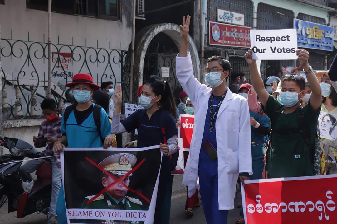 စစ်တပ်အာဏာသိမ်းမှုကို ဆန့်ကျင်ကန့်ကွက်သည့်အနေဖြင့် တစ်နိုင်ငံလုံးရှိ ဆရာဝန်၊ သူနာပြုတွေ အပါအဝင် ကျန်းမာရေး ဝန်ထမ်းအတော်များများ အလုပ်တာဝန်များရပ်နားလိုက်ကြပြီး အာဏာရှင် ဖီဆန်ရေး လှုပ်ရှားမှု (Civil Disobedience Movement) ကို ဖေဖော်ဝါရီလ ၂ ရက်က စတင်လှုပ်ရှားခဲ့ကြောင်း သတင်းရရှိသည်။