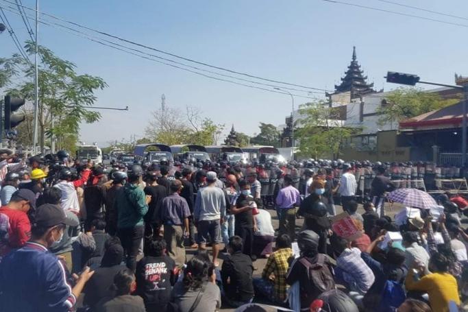 ၃၈ လမ်းနဲ့ ၇၃ လမ်းမှာတော့ ပြည်သူတွေက ထိုင်သပိတ်ပြုလုပ်တောင်းဆိုနေကြပါတယ်။