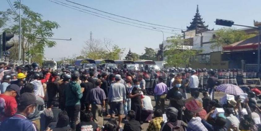 မန္တလေးမြို့ ၃၈ လမ်းမှာ တောင်းဆိုနေတဲ့ပြည်သူတွေ ငြိမ်ရင် ဖမ်းဆီးခံထားရသူတွေလွှတ်ပေးမယ်ဆိုလို့ ပြည်သူတွေငြိမ်နေစဉ်မှာ ရေကားနဲ့ဖြိုခွဲဖမ်းဆီးခဲ့တာကြောင့် ထွက်ပြေးစဉ် အုတ်တံတိုင်းကျော်မိပြီး