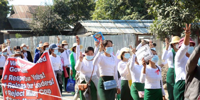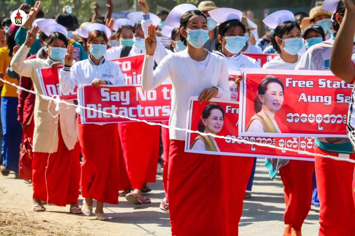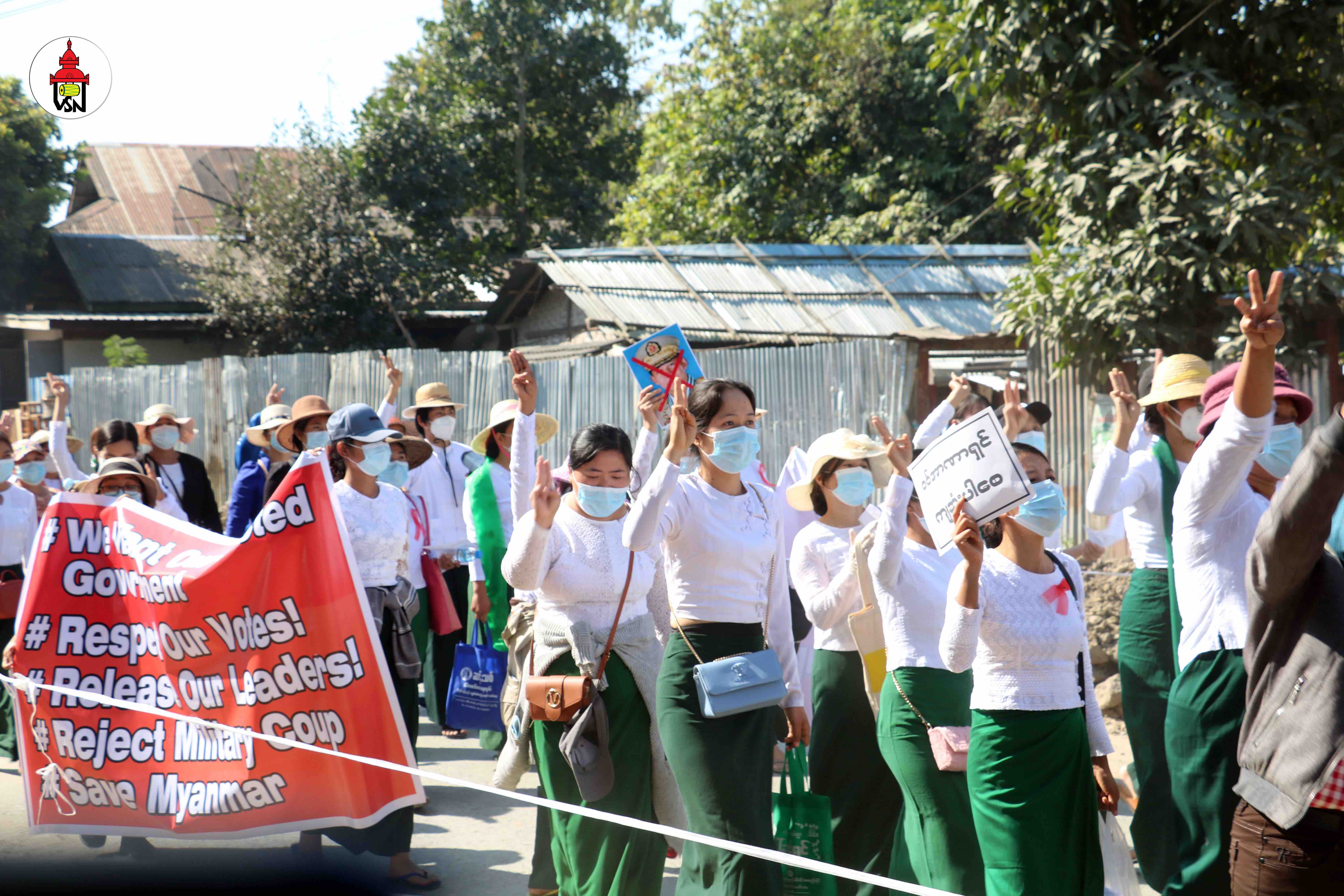 ၎င်းတို့ကလည်း ၂၀၂၀ ရွေးကောက်ပွဲရလဒ်သည် ပြည်သူဆန္ဒ၊ စစ်အာဏာရှင်အလိုမရှိ၊ စစ်အာဏာရှင်ပျက်သုဉ်းရေးနှင့် ဖမ်းဆီးထားသည့် နိုင်ငံတော်အတိုင်ပင်ခံ ဒေါ်အောင်ဆန်းစုကြည် ကျမ်းမာပါစေ စသည့် ဆောင်းပုဒ်များဖြင့် ကြွေးကျော်ဆန္ဒပြခဲ့ကြခြင်းဖြစ်သည်။