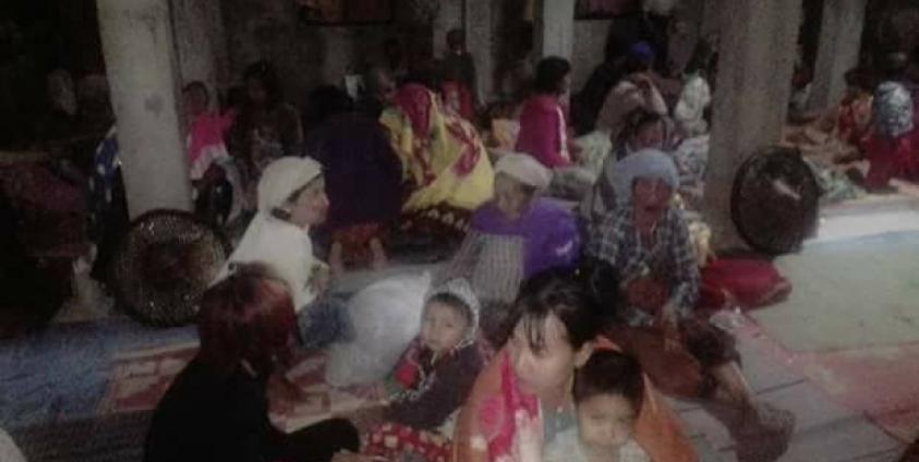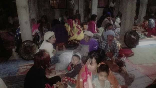 (အနောက်ဇီးတော ဘုန်းတော်ကြီးကျောင်း(ရွှေကျင်) တွင် မုန်တိုင်းတိုက်သည့်နေ့က ခိုလှုံနေသူများကို တွေ့ရစဉ်/ ဓာတ်ပုံ-အောင်မြင့်သူ)