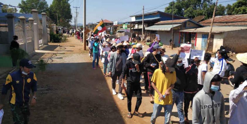 အာဏာသိမ်းစစ်အုပ်ချုပ်ရေးအလိုမရှိ ငြိမ်းချမ်းစွာ ဆန္ဒပြပွဲအား ယနေ့ ဖေဖေါ်ဝါရီလ ၁၁ ရက်နေ့ ပထမ ဉီးဆုံး ပွဲဉီးထွက် ခြင်းဖြစ်သည်။ ပါဝင်သူ လူ ၂၀၀ ကျော်ရှိပြီး ခိုလမ်မြို့ အထက ကျောင်းမှ မြို့မ ဈေးသို့ စီတန်းလှည့်ခဲ့ကြသည်။