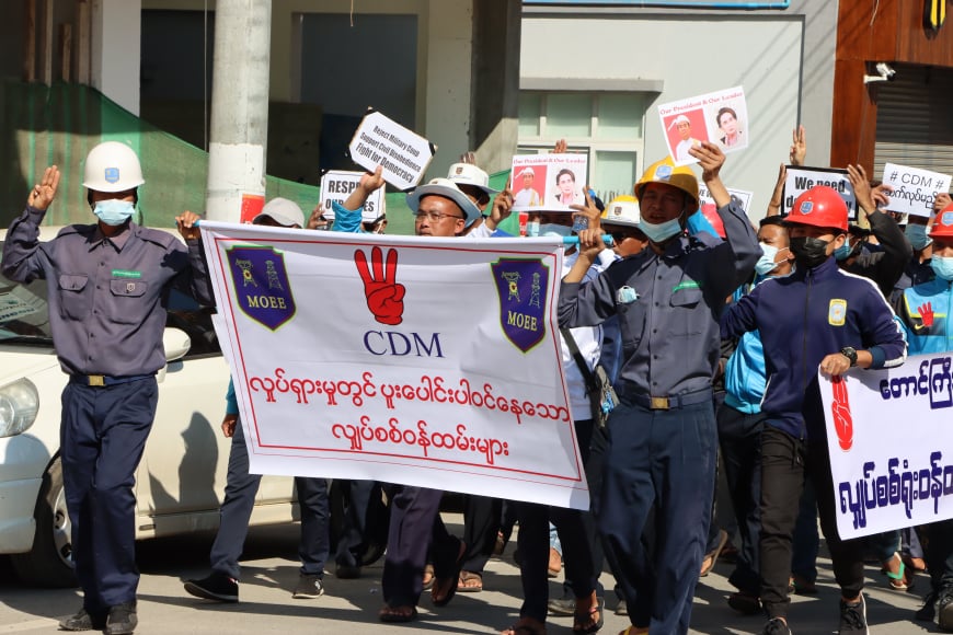 စစ်အာဏာ သိမ်းမှု ဆန့်ကျင်ရေး လှုပ်ရှားမှုများတွင် ဆရာဝန်များ ၊ ကျန်းမာရေးဝန်ထမ်း များ ၊ ကျောင်းသားများ ၊ ရှေ့နေများ ၊ လူငယ်များ နှင့် ဒေသခံ တိုင်းရင်းသားများ နှင့် အတူ လျှပ်စစ်ရုံးဝန်ထမ်းများ ၊ ဆက်သွယ်ရေး ဝန်ထမ်းတစ်ချို့ ၊ နှင့် စိုက်ပျိုးရေးဦးစီးဌာနမှ ဝန်ထမ်းများပါဝင်လာပြီး လူအင်အား သိန်းကျော် ဖြင့် မိန်းလမ်းမတစ်လျှောက် ဆန္ဒထုတ်ဖော် လည့်လှည်ခဲ့ကြောင်းသိရသည် ။