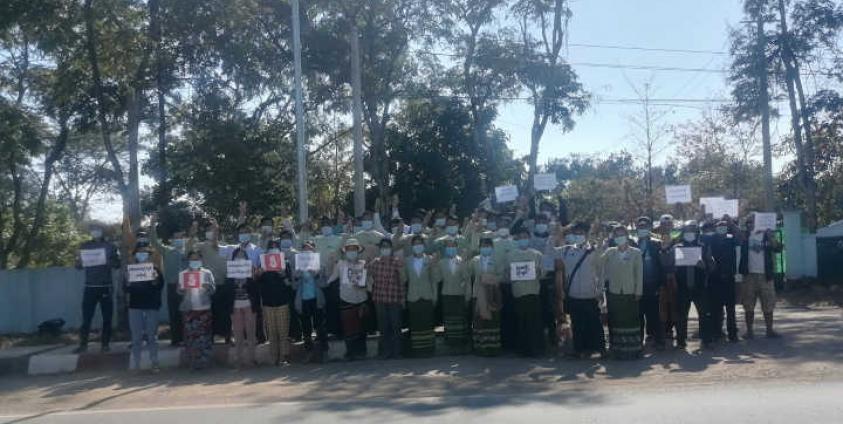 အာဏာရှင်ကို ဆန့်ကျင်တဲ့ လူထုလှုပ်ရှားမှုမှာ ပါဝင်ခဲ့တဲ့ လွိုင်ကော်ခရိုင် အထွေထွေအုပ်ချုပ်ရေး ဦးစီးဌာနမှူးနဲ့ နန်းမယ်ခုံမြို့ အုပ်ချုပ်ရေးမှူးကို တာဝန်မှယာယီရပ်ဆိုင်းထားတယ်လို့ ဖေဖော်ဝါရီလ ၁၁ရက်နေ့စွဲနဲ့ ပြည်နယ်အထွေထွေအုပ်ချုပ်ရေးဦးစီးဌာနက စာထုတ်ပြန်ခဲ့ပါတယ်။