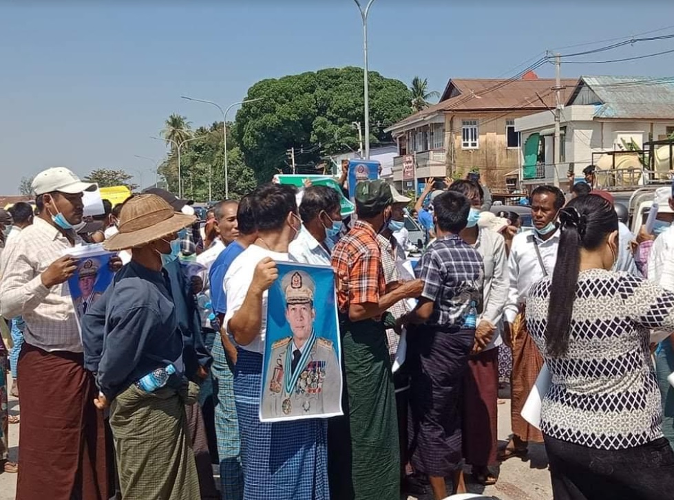 မော်လမြိုင်မြို့တွင် စစ်အာဏာရှင် ဆန့်ကျင်ရေး အထွေထွေသပိတ်မှောက် ဆန္ဒပြမှု ဖေဖော်ဝါရီ ၁၂ ရက်က အကြမ်းဖက်ဖြိုခွင်းခံခဲ့ရပြီးနောက်တစ်နေ့တွင် တပ်ထောက်ခံသူများ ရောက်ရှိလာခြင်းဖြစ်သည်။